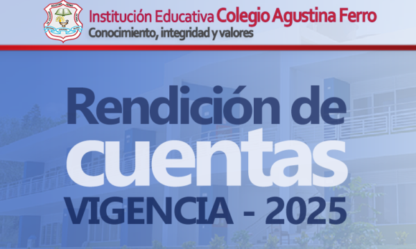 El Consejo Directivo de la Institución Educativa Colegio Agustina Ferro, presidido por el rector Ing. Óscar Emilio Pallares León, invita cordialmente a la comunidad y a las autoridades competentes a la Audiencia Pública de Rendición de Cuentas - Vigencia 2025. El evento se llevará a cabo el día 11 de febrero de 2026, a las 6:30 a.m., en las instalaciones de la Sede Principal Colegio Agustina Ferro.