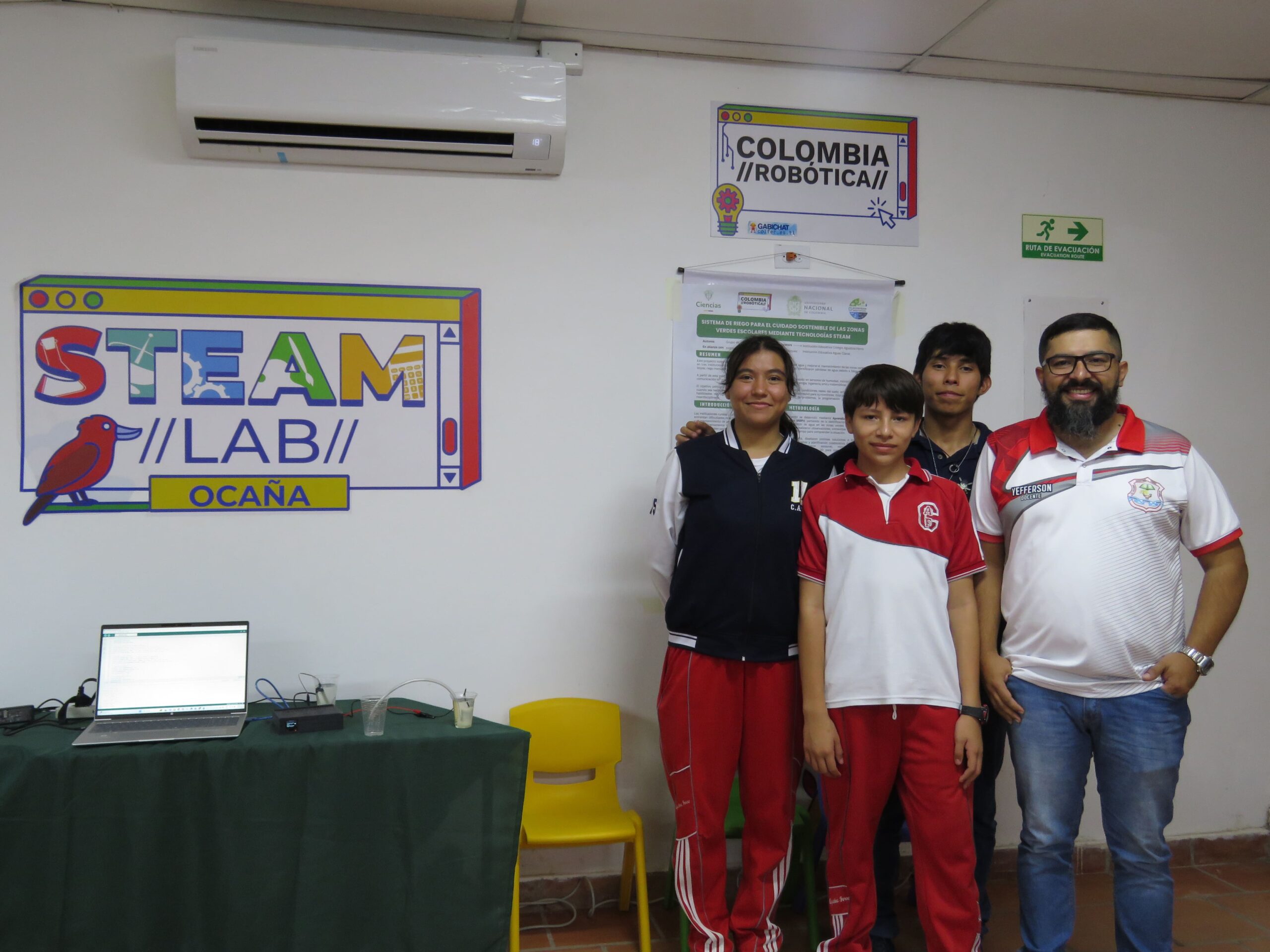 Los estudiantes que representaron oficialmente a nuestra institución en el cierre del proyecto fueron: Erick Daniel Chacón Rincón, José David Lobo Gómez y María Camila Arias Sánchez, quienes compartieron los avances, el impacto educativo y el potencial ambiental del sistema de riego automatizado, dejando en alto el nombre de nuestra institución.